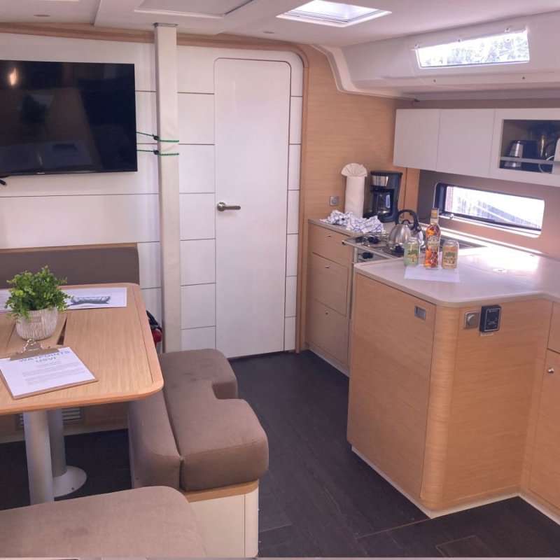 Easy Wind is a stylish 2-cabin yacht, perfect for up to 4 guests, featuring a bright interior with luxury finishes. The cockpit includes an extendable table, bench seating, and a swim platform with an outdoor grill. Equipped with twin wheels, premium instruments, air conditioning, a generator, a bimini, and a water maker, Easy Wind ensures a comfortable and smooth sailing experience from beach to beach.